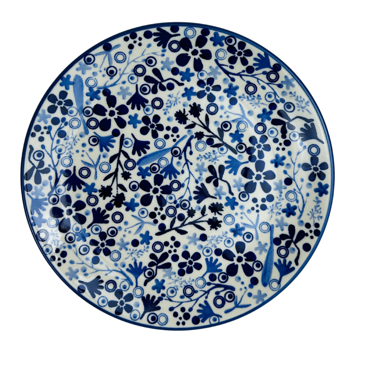 TALERZ ŚNIADANIOWY KWIATY KOBALT BOLESŁAWIEC